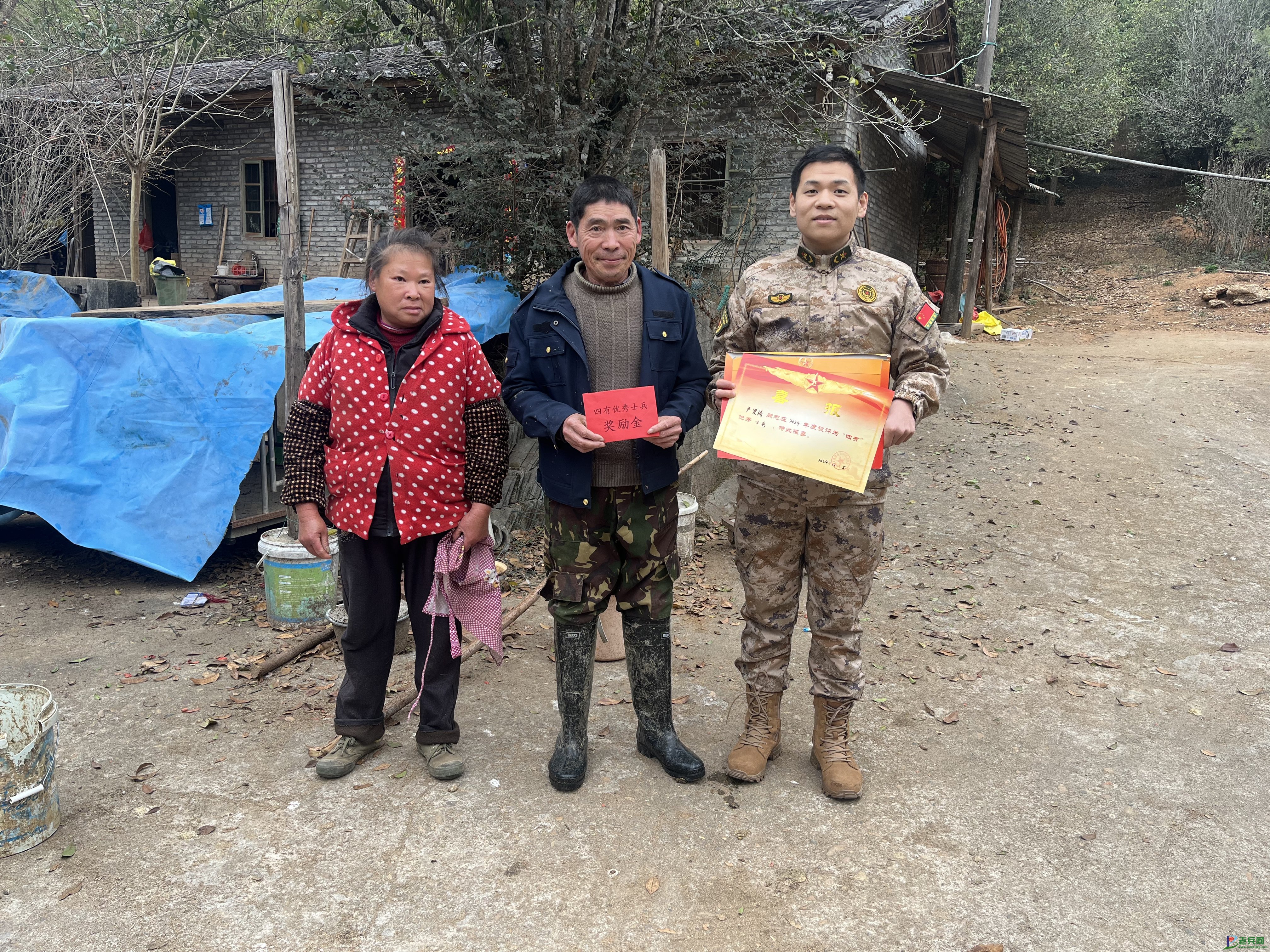 埔上镇为现役军人卢贤涛家庭送"四有"优秀士兵喜报