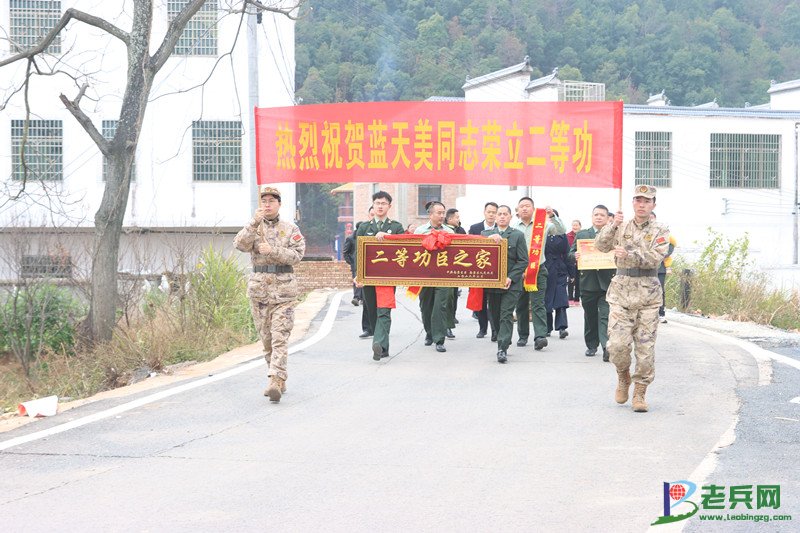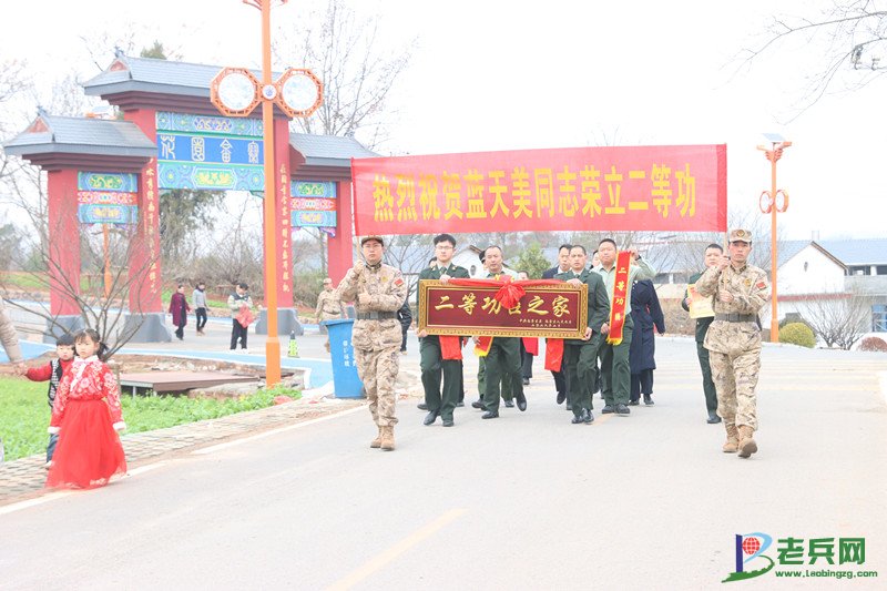 “咚咚锵!咚咚锵!” 喜庆的锣鼓声穿透乡野,引得邻里乡亲纷纷驻足围观、拍手道贺。慰问组一行带着沉甸甸的荣誉,走进荣立个人二等功的现役军人蓝天美家中,亲手将烫金喜报、暖心慰问金与熠熠生辉的 “二等功臣之家” 牌匾送到其家属手中。红彤彤的喜报映红了家人的笑脸,也点亮了整个院落的喜庆氛围。