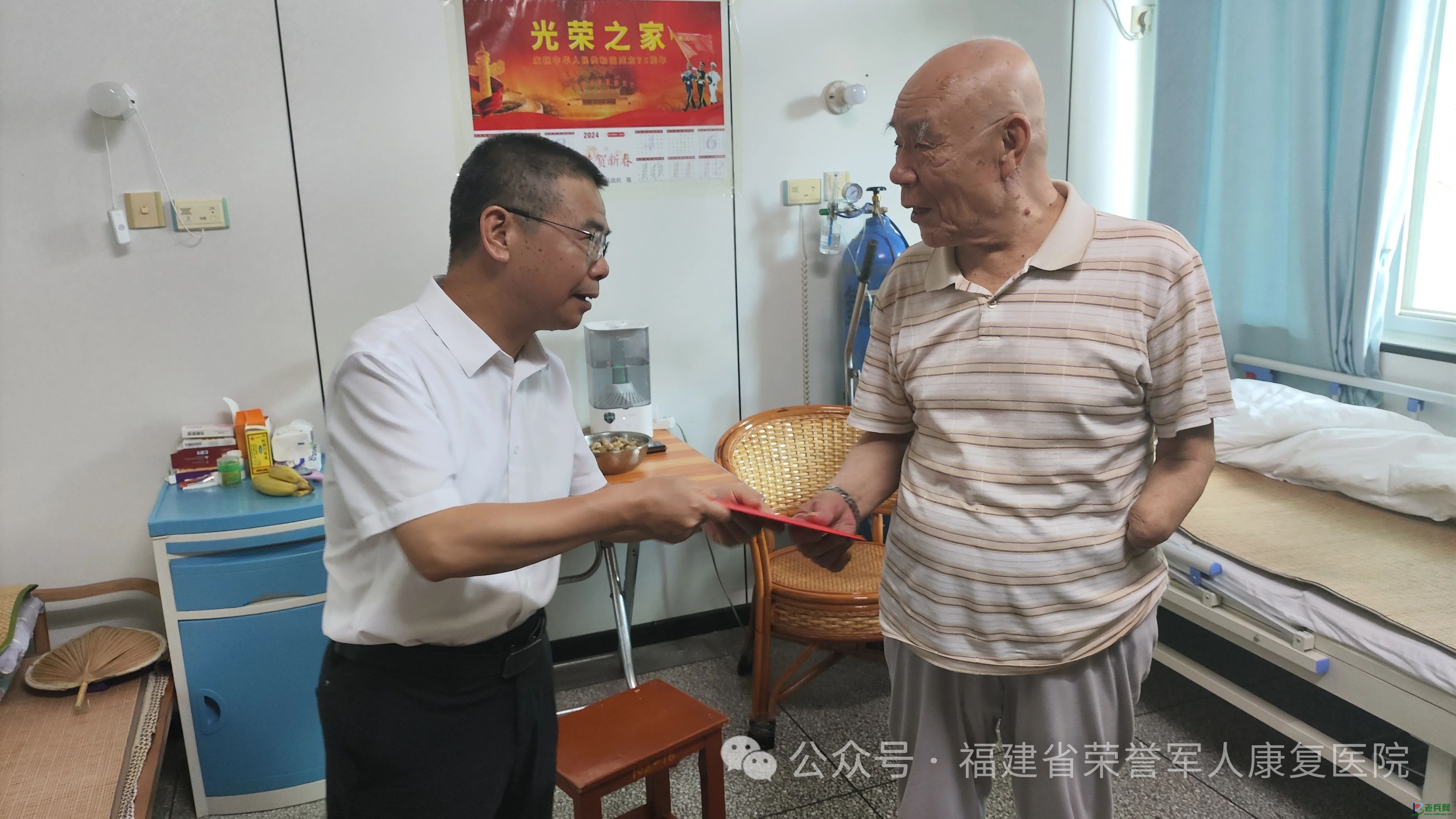 陈副厅长一行采取上门走访和集体慰问的形式,先后赴建瓯市玉山镇东山村、福建省荣誉军人康复医院,为困难退役军人家庭及荣军休养员带去节日问候、送上节日慰问金。上午,在连贤德家中,陈副厅长与其家属亲切交谈,对为国家和社会作出贡献的老兵表示衷心感谢和崇高敬意;下午,慰问组来到福建省荣誉军人康复医院,对荣军休养员进行走访慰问,并详细了解他们的服役经历、身体状况、生活情况。陈副厅长对荣军休养员乐观向上、坚毅勇敢,积极配合康复治疗的精神予以赞誉,鼓励他们增强信心、安心休养。同时他还向医护人员仔细询问荣军休养员的休养康复情况,并对福建省荣誉军人康复医院的优抚医疗服务保障工作给予充分肯定。