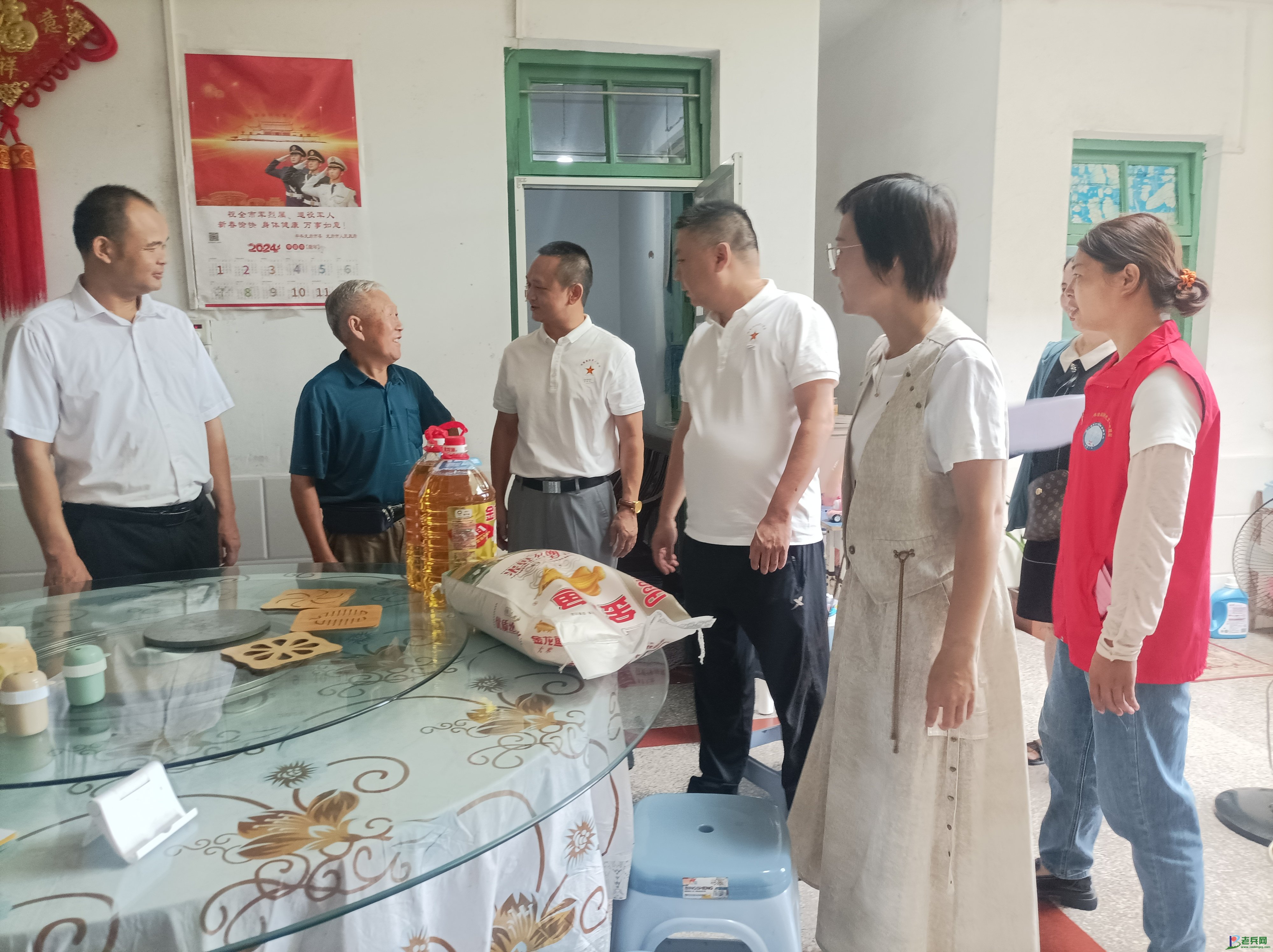 汀州镇困难退役军人王绍楼夫妇二人患有不同程度的腰、腿痛等慢性疾病,经常需要做康复治疗,支出医疗费用大。儿子儿媳没固定工作,靠做零工,收入较低。两个女儿9岁和6岁已到上学年龄,压力较大,生活上较为困难。慰问组给王绍楼夫妇带去慰问品,鼓励他们建立生活信心,渡过暂时困难,勇敢地自立、自救、自强,他们深受感动。