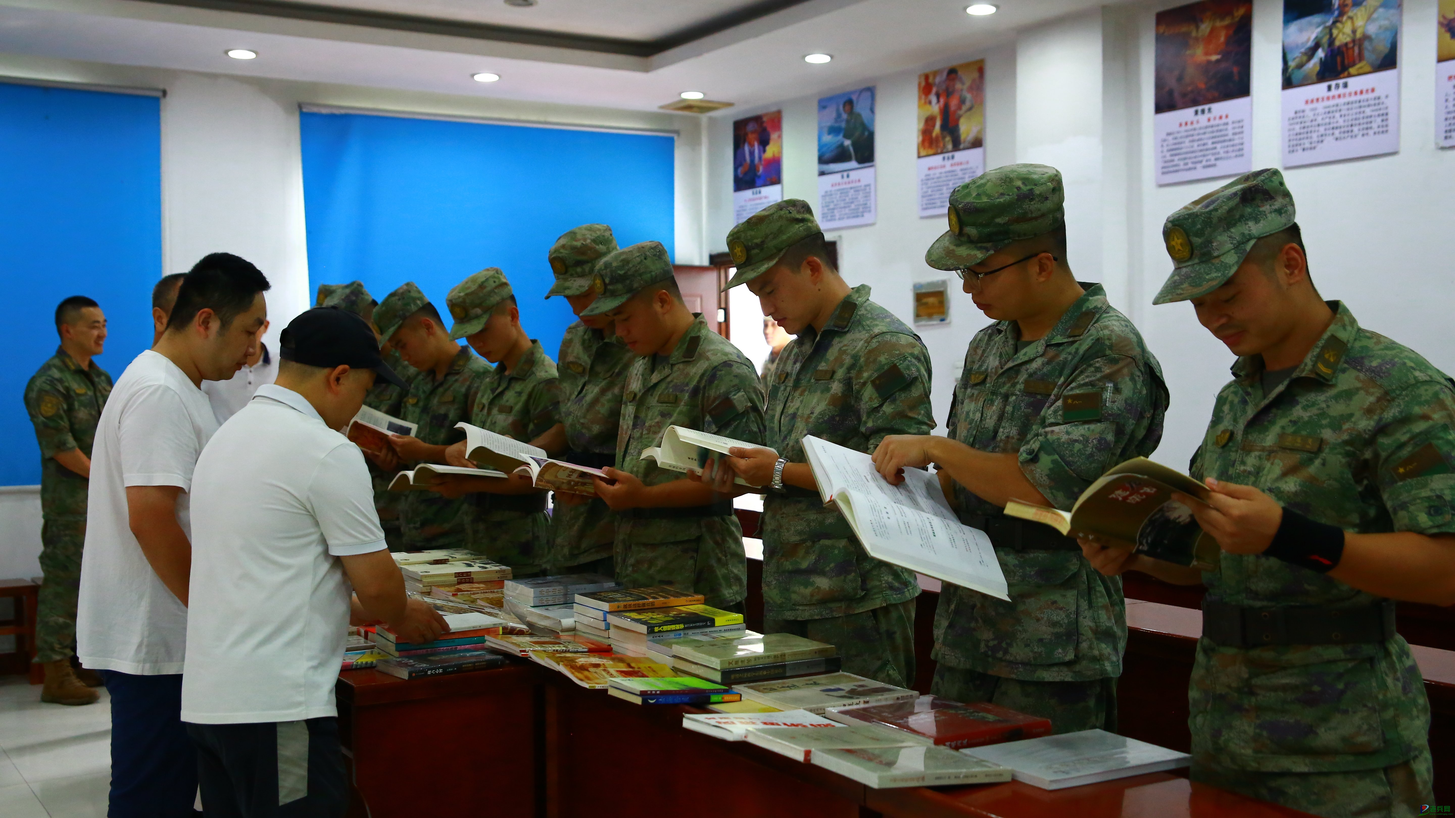 官兵们正在阅读新书籍(照片由建瓯市退役军人事务局提供)