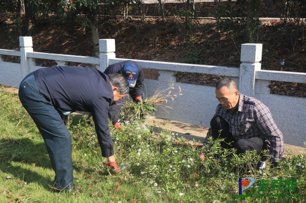 大家正在清理陵园内的杂草,黄晓婷摄。