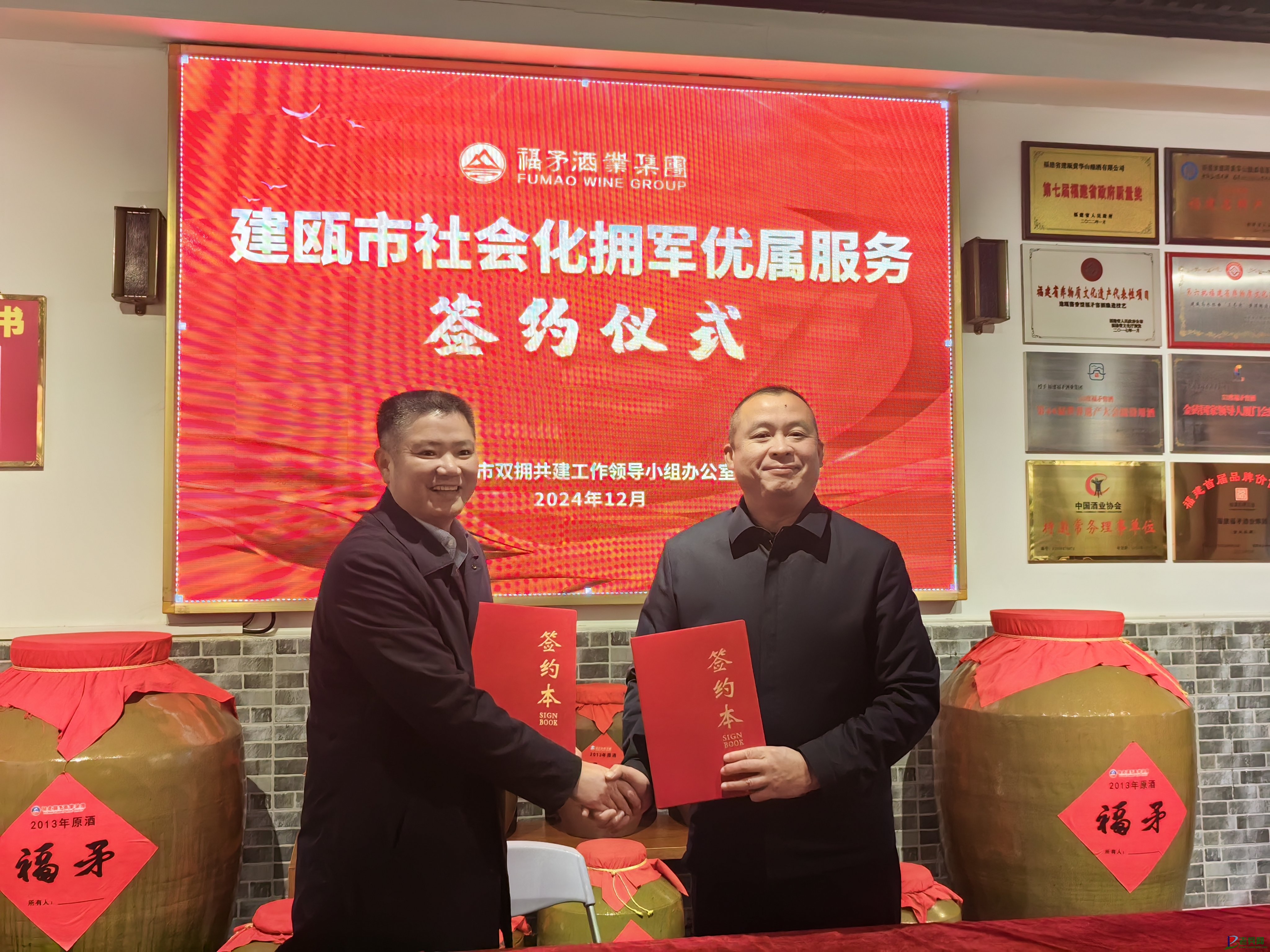 军民鱼水,情满芝城。为深入贯彻习近平总书记关于退役军人工作重要论述,大力营造尊崇军人职业、尊重退役军人浓厚氛围。12月30日,福建省建瓯市退役军人事务局与福建福矛酒业集团签订战略合作协议,并为福矛酒业集团授予“拥军企业”荣誉牌匾,此次合作标志着建瓯市双拥工作迈出坚实一步。