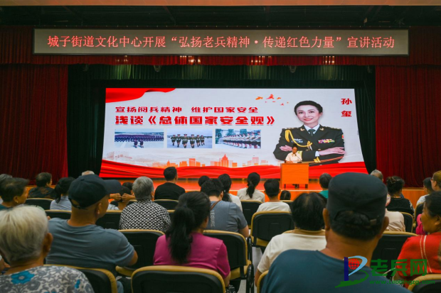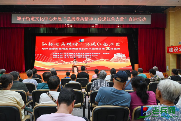 七月的北京市门头沟区城子街道文化中心,红旗与笑颜相映,老歌与新舞共辉。7月20日下午,由总体国家安全观五盾讲堂活动组委会、老兵网与城子街道文化中心联合主办的老兵新风宣讲团第3场活动在此温情上演。这场以 “弘扬老兵精神 传递红色力量”为主题的活动,通过“国家安全+宣讲+文艺” 的创新融合模式,让台下百余位居民在感动与震撼中完成了一次深刻的精神洗礼。