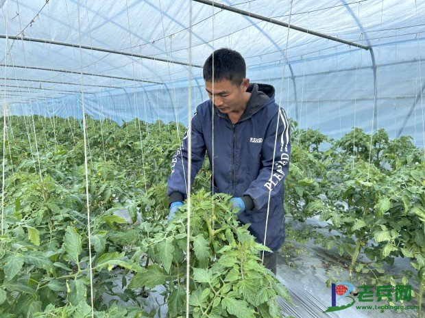 许江峰在大棚查看农作物长势