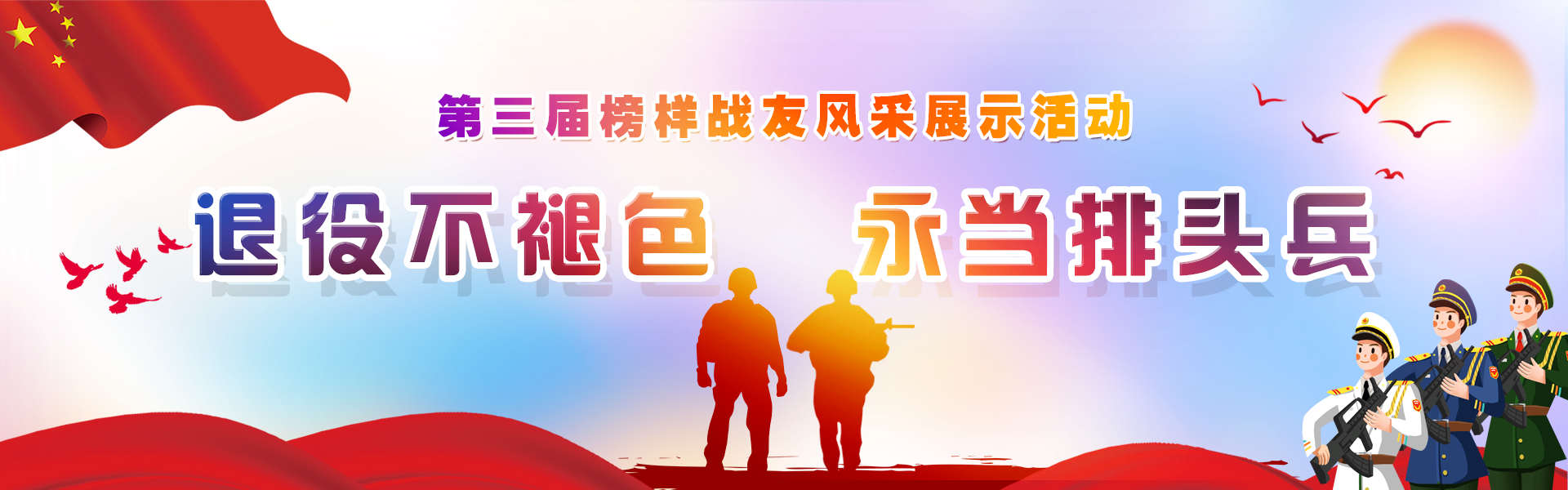 2、举办第三届战友榜样风采展示盛典,集中展示百名榜样战友先进事迹(时间、地点待定)。