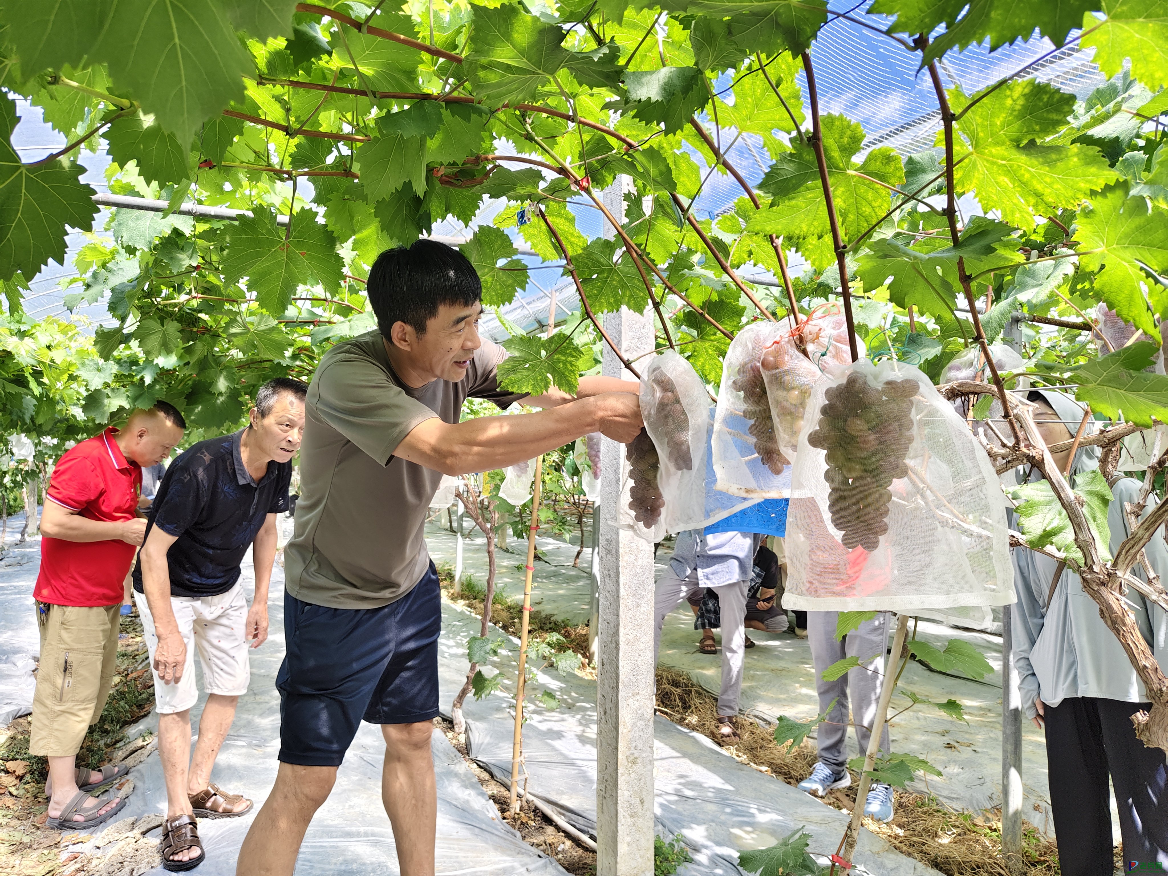 在葡萄种植园传授残疾人葡萄套袋技术