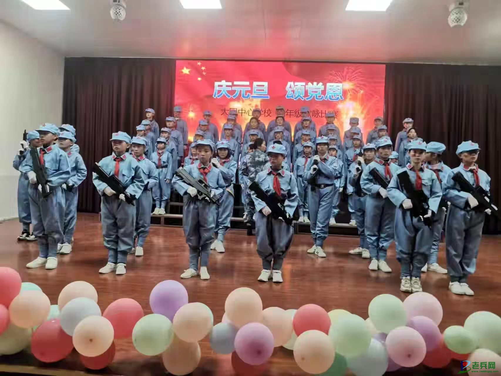 (2021年12月31日组织五二班同学在学校“庆元旦·颂党恩”活动中表演《打靶归来》)