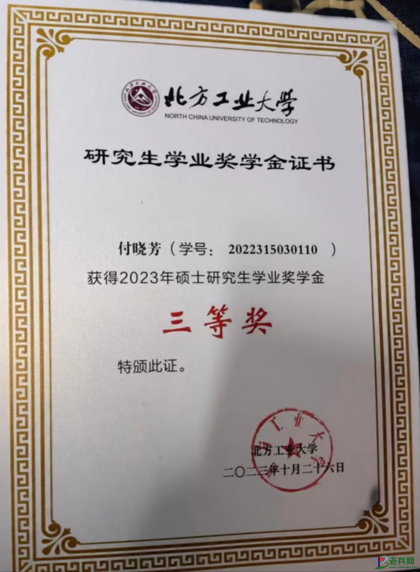 (2023年10月26日获得北方工业大学学业奖学金三等奖)