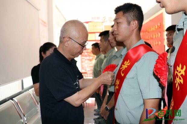 (为退役士兵佩戴绶带和大红花)