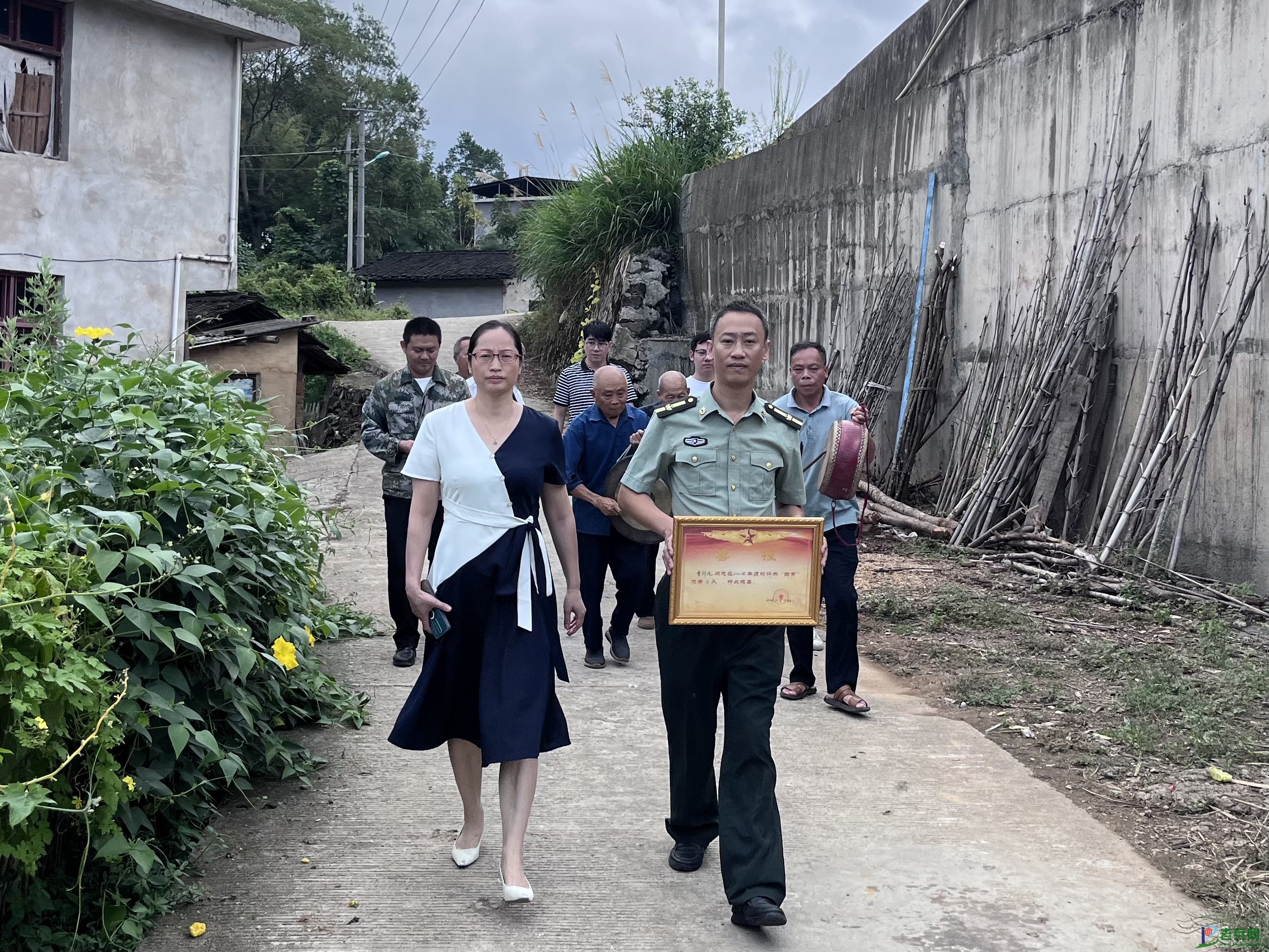 (敲锣打鼓为军人家属送喜报)