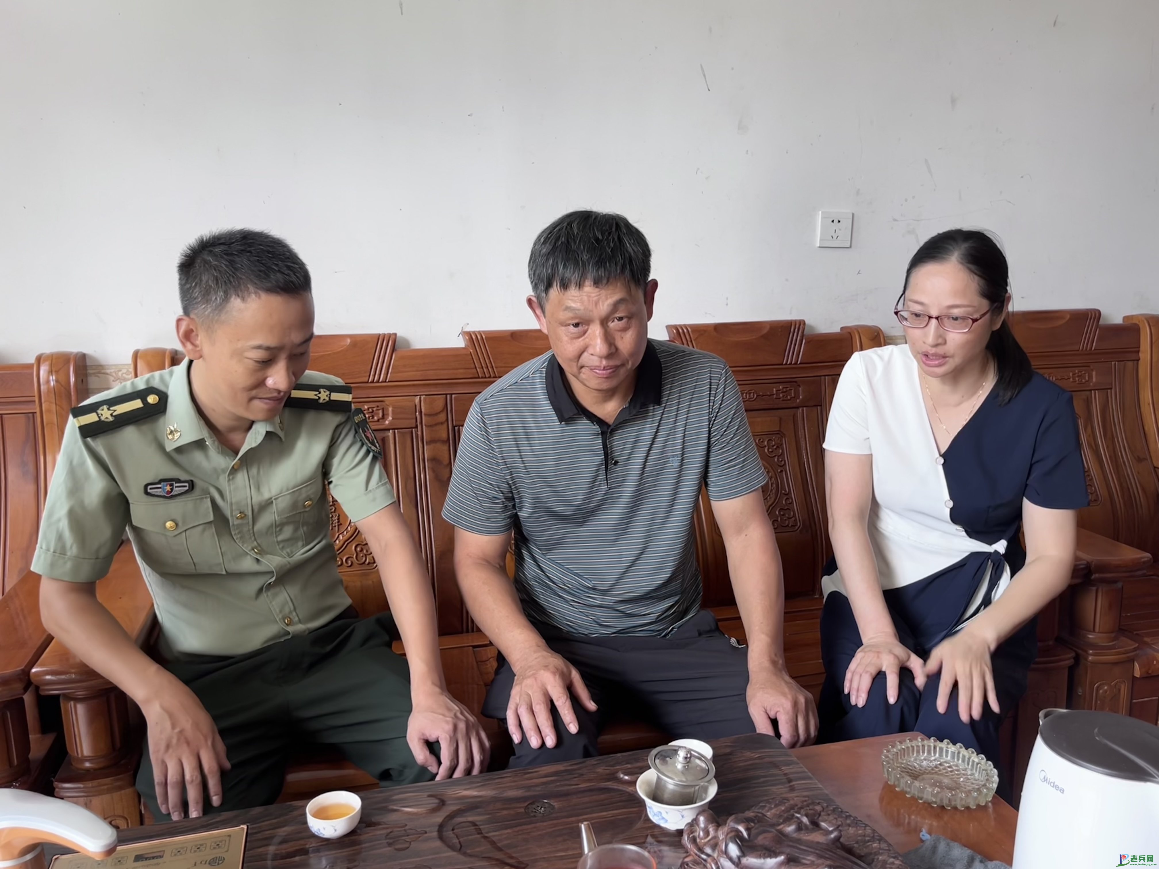 (与军人家属亲切交流)