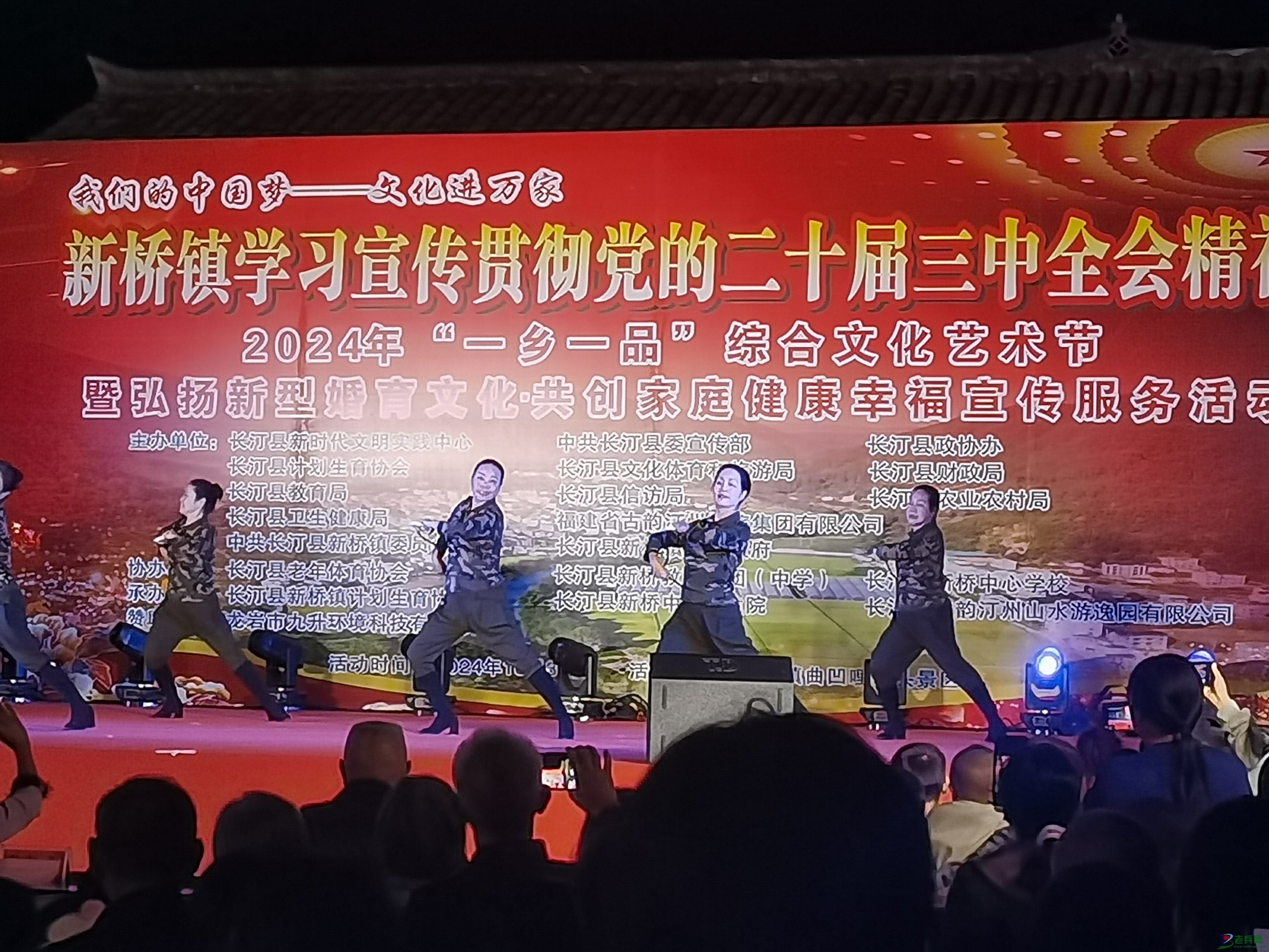 为学习宣传贯彻党的二十届三中全会精神以及习近平总书记在福建考察时的重要讲话精神,进一步弘扬地方特色文化,展现乡村风采,促进乡村振兴,10月30日,福建省龙岩市长汀县新桥镇成功举办了2024年“一乡一品”综合文化艺术节暨弘扬新型婚育文化·共创家庭健康幸福宣传服务活动。此次活动演出地点在新桥镇曲凹哩码头举行,汇聚了本地丰富多彩的文艺节目,还吸引了众多游客和村民前来观看,现场氛围热烈。为确保活动顺利进行,保障观众及演职人员的安全,退役军人志愿服务队承担了此次活动的安保工作任务,并圆满完成了各项安保措施。