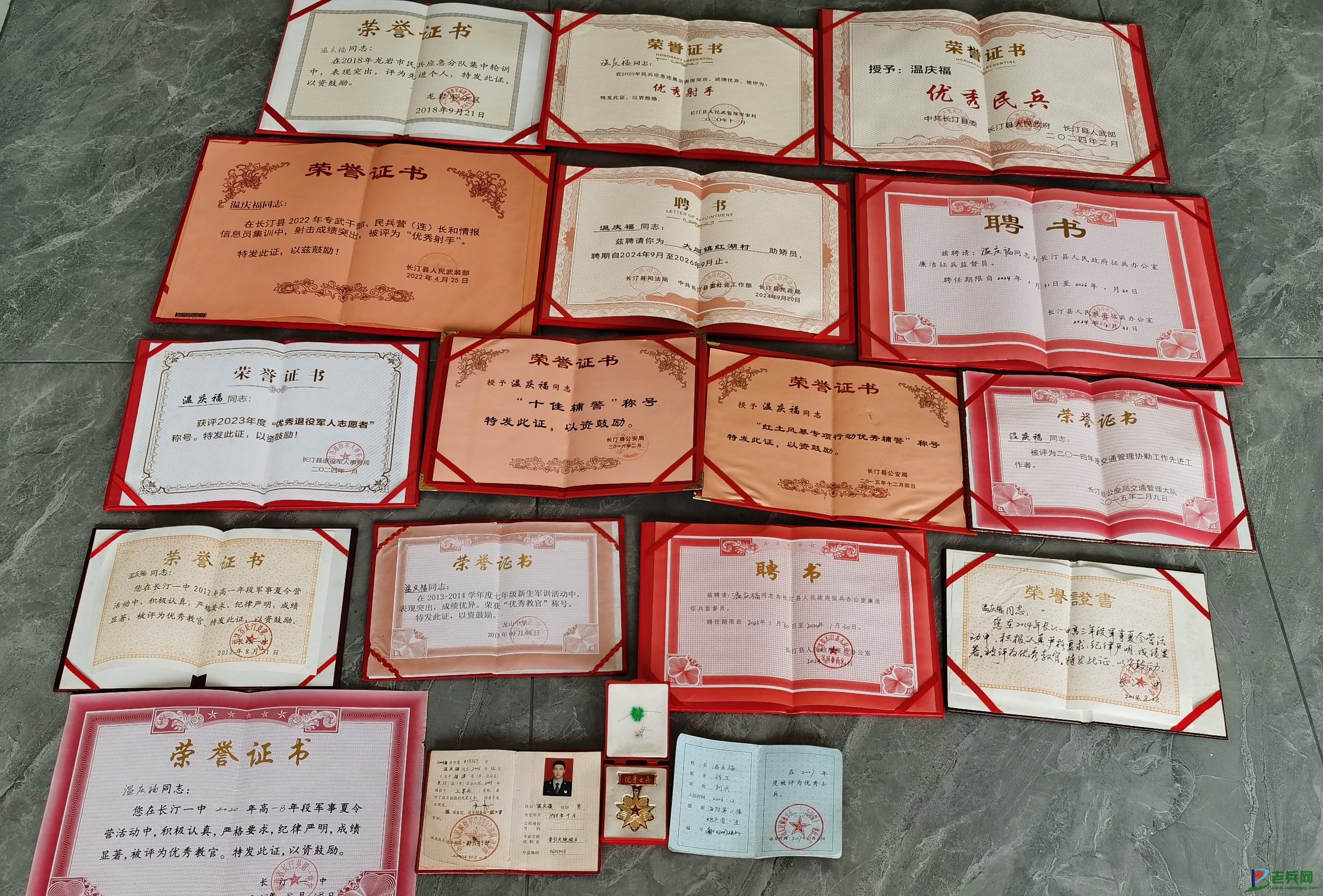 退伍后的温庆福同志在不同岗位上,以个人素养言传身教,脚踏实地地为群众做实事,出色的工作表现让他赢得广泛赞誉,2016年荣获“十佳辅警”、2018年在龙岩军分区轮训中被评为先进个人、多次被评为“优秀射手”、2024年获评“优秀退役军人志愿者”“优秀民兵”等荣誉,如何更好地发挥作为退役军人的作用是他一直以来开展工作的出发点和落脚点。