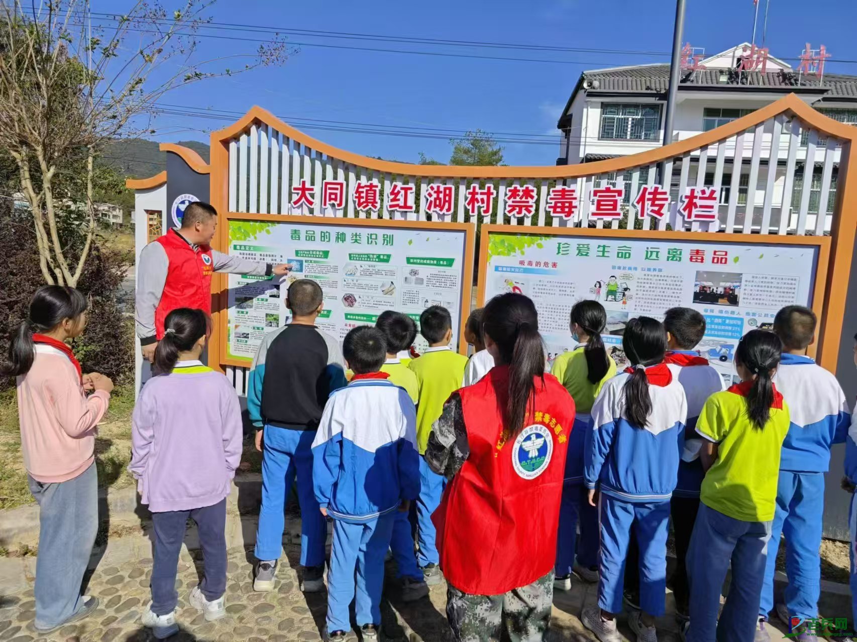(温庆福为大同中心校学生宣传禁毒知识)
