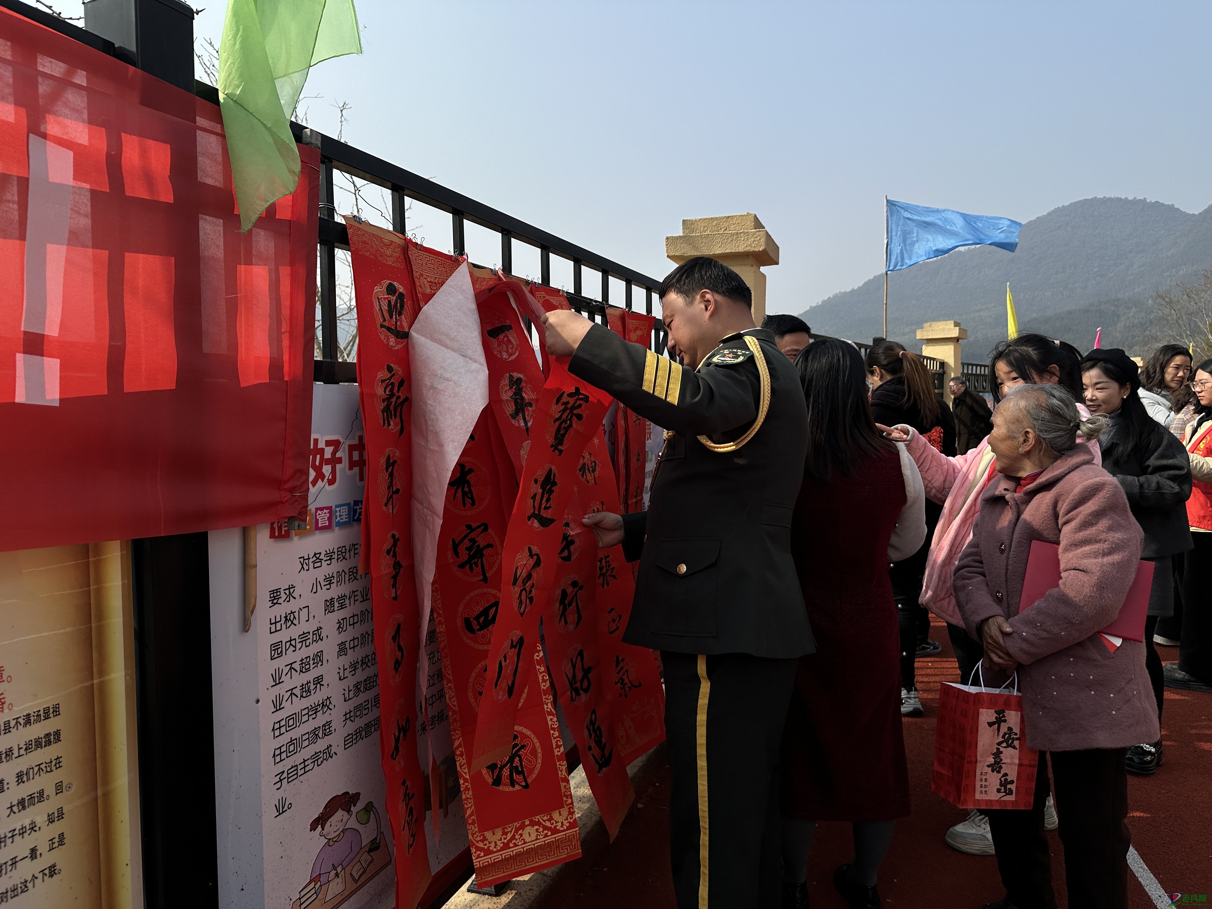 此次活动特别邀请到著名音乐制作人、“中国好声音”上海赛区评委、上海市杨浦区退役军人艺术团团长姜昊成老师,带来《百年风华》、《说句心里话》、《青春在路上》等多首歌曲联唱,悠扬的旋律吸引了大家共同齐唱,现场气氛不断推向高潮。随后,濠村中心小学学生还表演了啦啦操、二声部合唱等文艺节目,并向出席活动的各位嘉宾赠送了春联、“福”字。