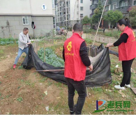 退役军人志愿者在仁阳社区整理庭院