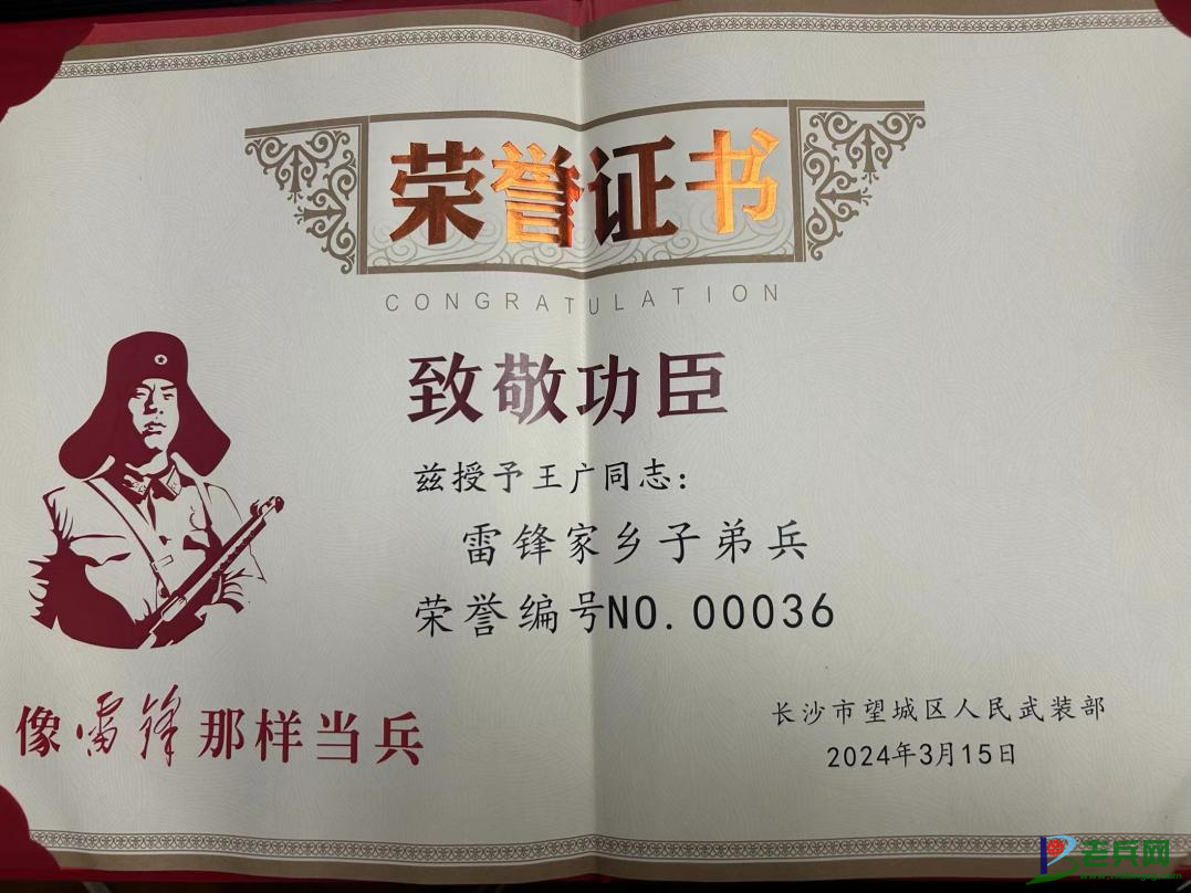风雨一路、披荆斩棘,王广用雷锋家乡子弟兵的“钉子”精神,在军队践守承诺、吃苦耐劳,自觉用排头兵的标准要求自己,他的人生追求是:干一行、爱一行、专一行。这恰是这枚勋章背后的精神载体。