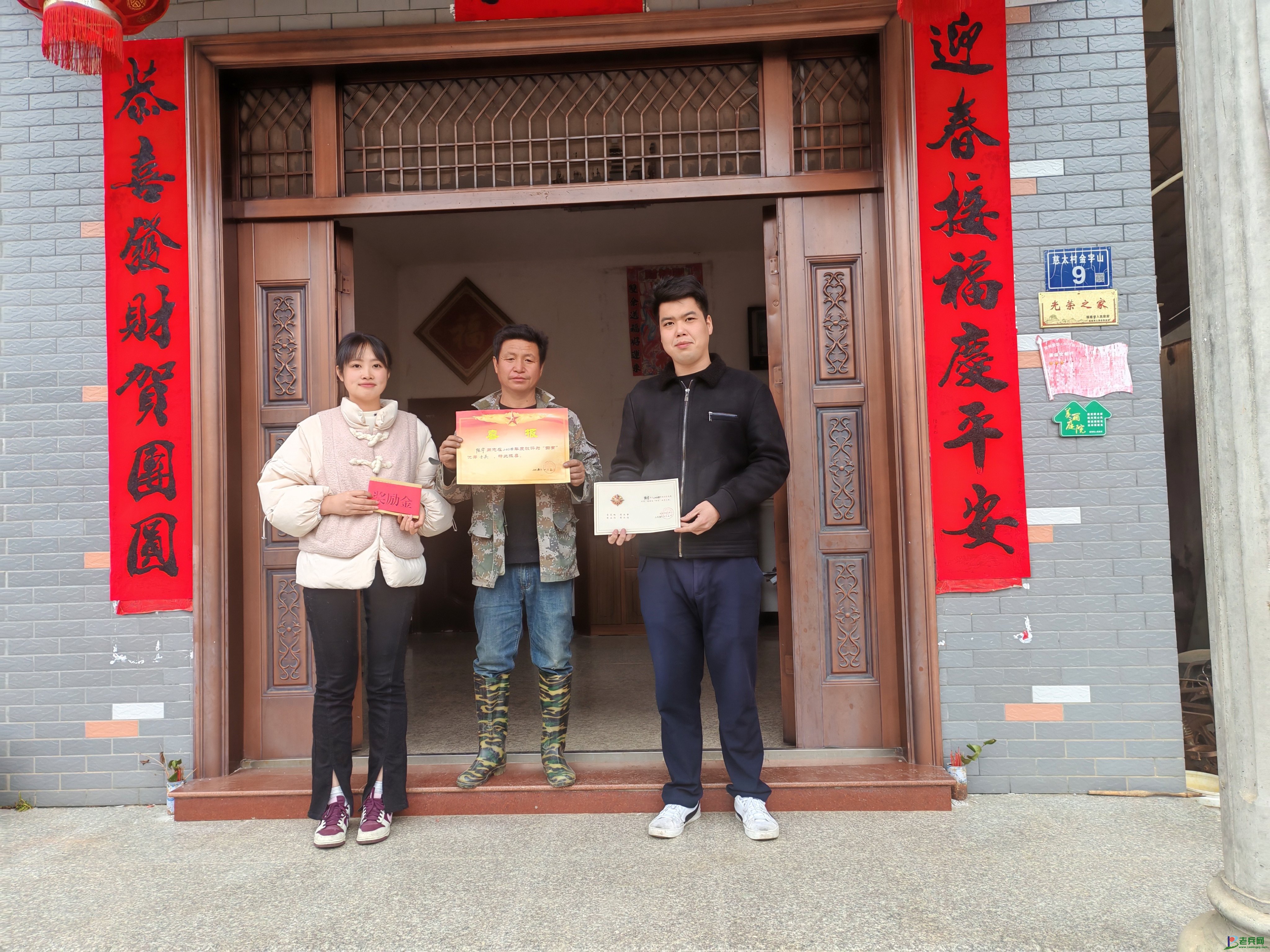 埔上镇为现役军人卢贤涛家庭送"四有"优秀士兵喜报