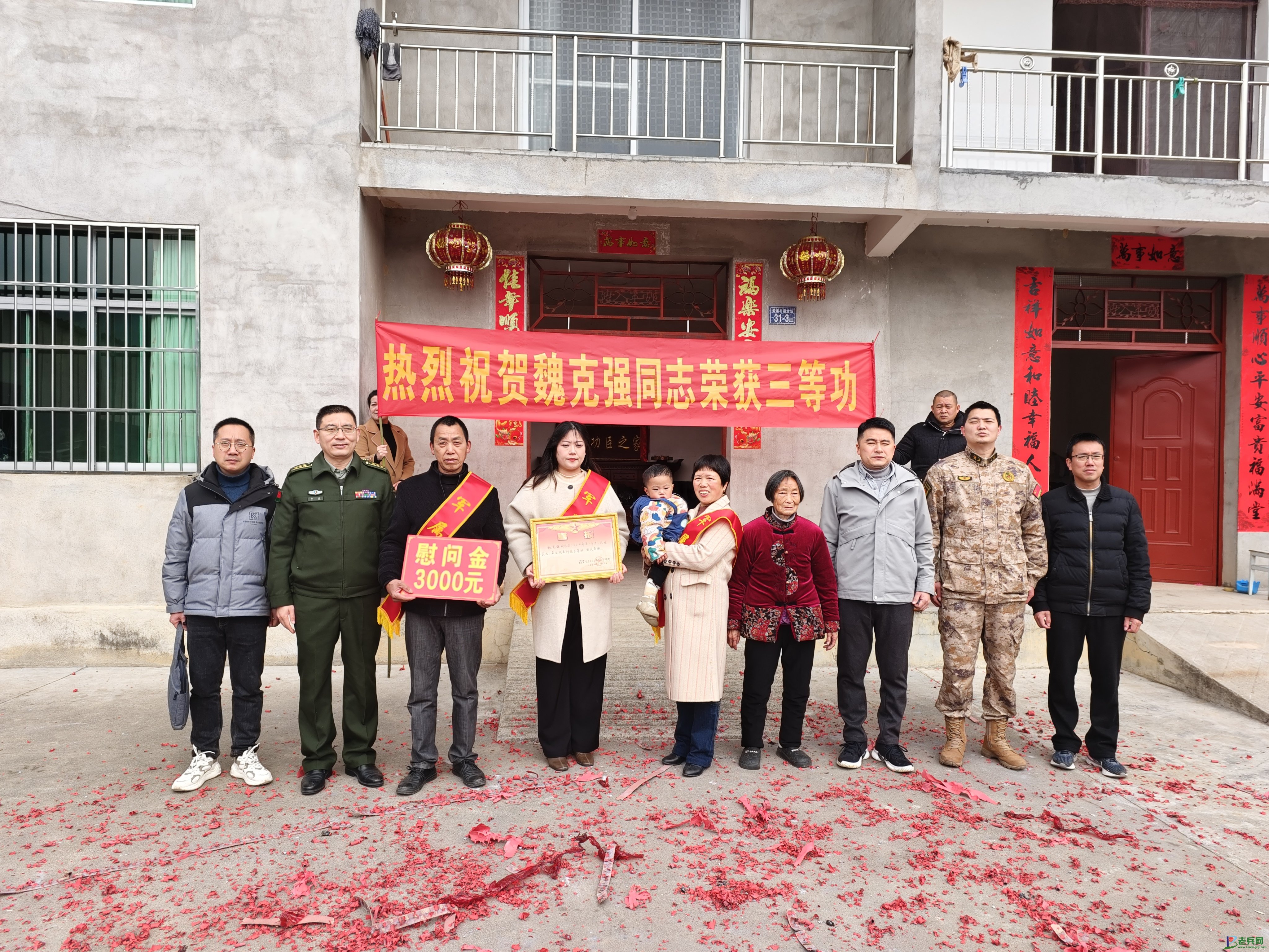 元坑镇为现役军人魏克强家庭送三等功喜报