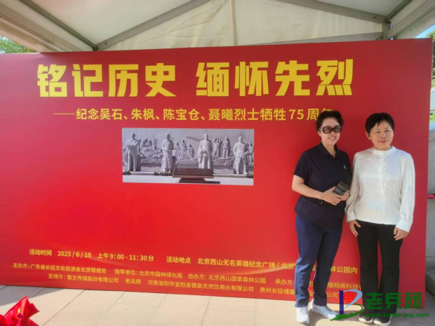 松柏苍翠寄哀思,丰碑巍巍颂忠魂。2025年6月10日上午,一场庄严肃穆且意义非凡的“铭记历史 缅怀先烈”纪念活动,于北京西山森林公园无名英雄广场盛大举行。约300余位来自各界的代表齐聚于此,怀着无比崇敬与沉痛的心情,深切追念75年前为民族解放事业英勇献身、壮烈牺牲的吴石、朱枫、陈宝仓、聂曦四位隐蔽战线英烈 。老兵网总裁石应红应邀出席活动,老兵网副总裁秦广泽为活动提供赞助。