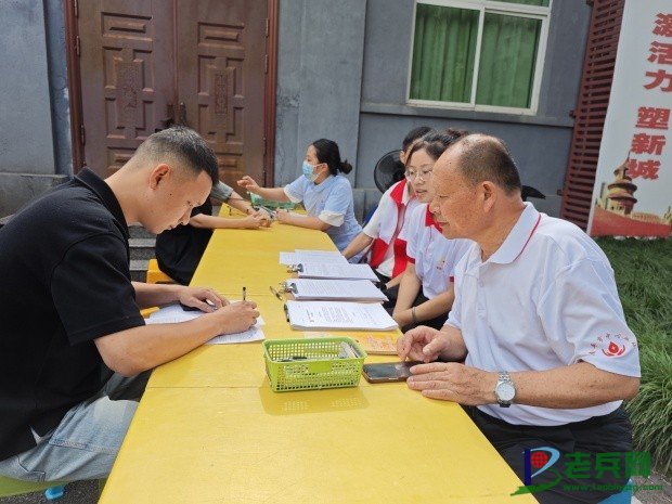 退役军人林成强为爱心人士登记献血信息