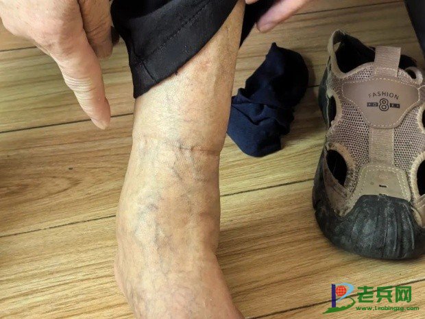 弹片长年滞留在体内导致老人的腿部变形