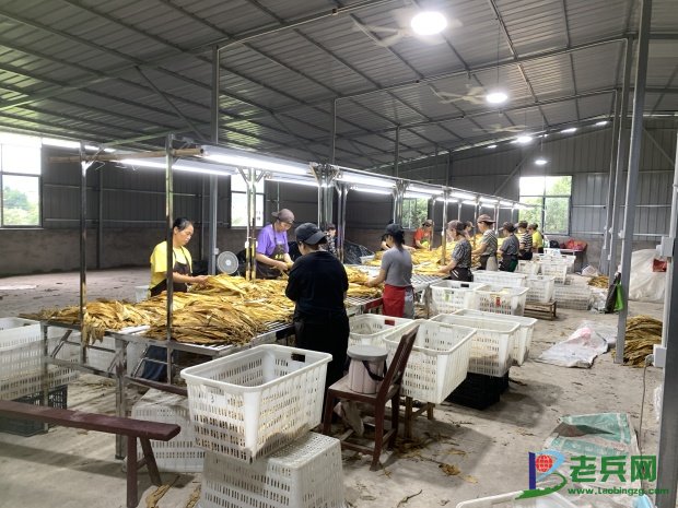 村民们在新建分拣中心进行烟叶分拣工作