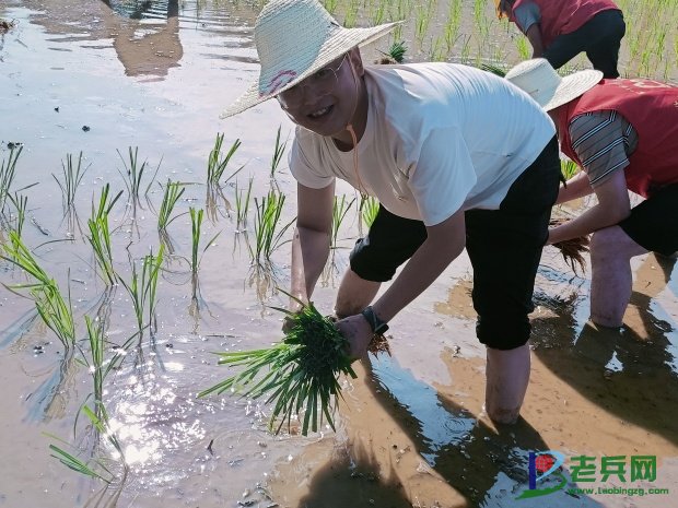 余海滔在田间帮助村民插秧