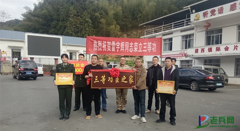为现役军人雷宇辉家庭送上三等功喜报
