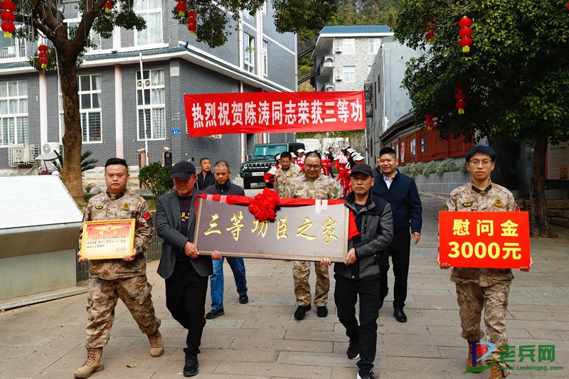 为现役军人陈涛家庭送上三等功喜报