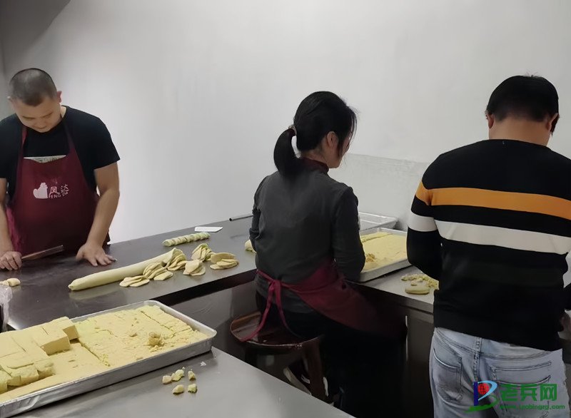 王壬鑫(左一)制作绿豆酥