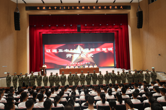 八月的骄阳, 铸就了青春的刚毅;迷彩的海洋,见证了成长的蜕变。8月25日,吉林省辽源市第五中学2025级秋季学期高一新生军训开营仪式在学校大礼堂隆重举行,龙山区人武部、学校领导、教官,以及1300余名高一新生共同参加了大会。 上午8时,开营仪式在庄严的升国旗、奏唱国歌中拉开序幕。当中华人民共和国国歌响起,全体人......