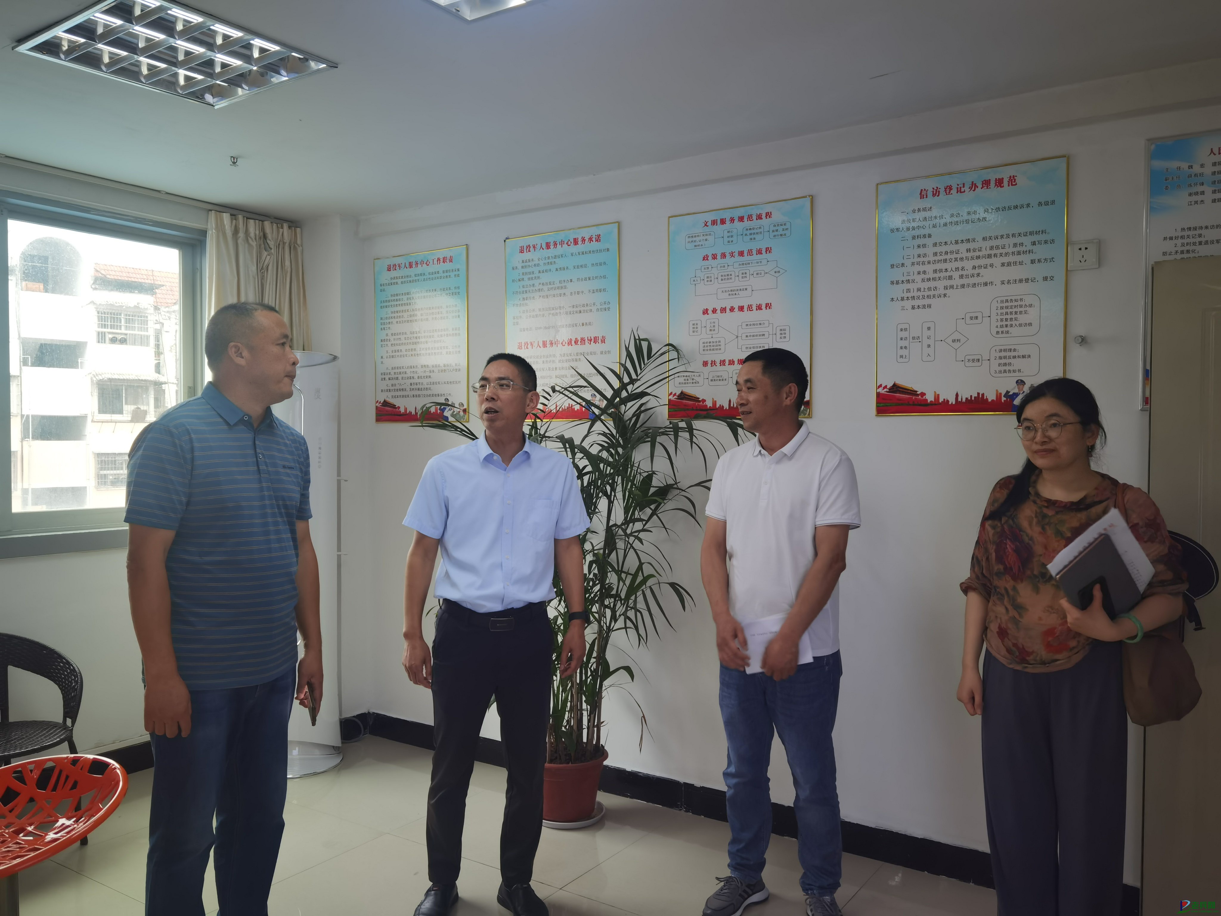 近日,福建省南平市退役军人事务局党组成员、副局长余其纲邀请南平市人大代表陈继雄、方木秀、詹明表,在建瓯市退役军人事务局就“关于成立退役军人就业创业孵化基地”的建议办理工作召开座谈会。