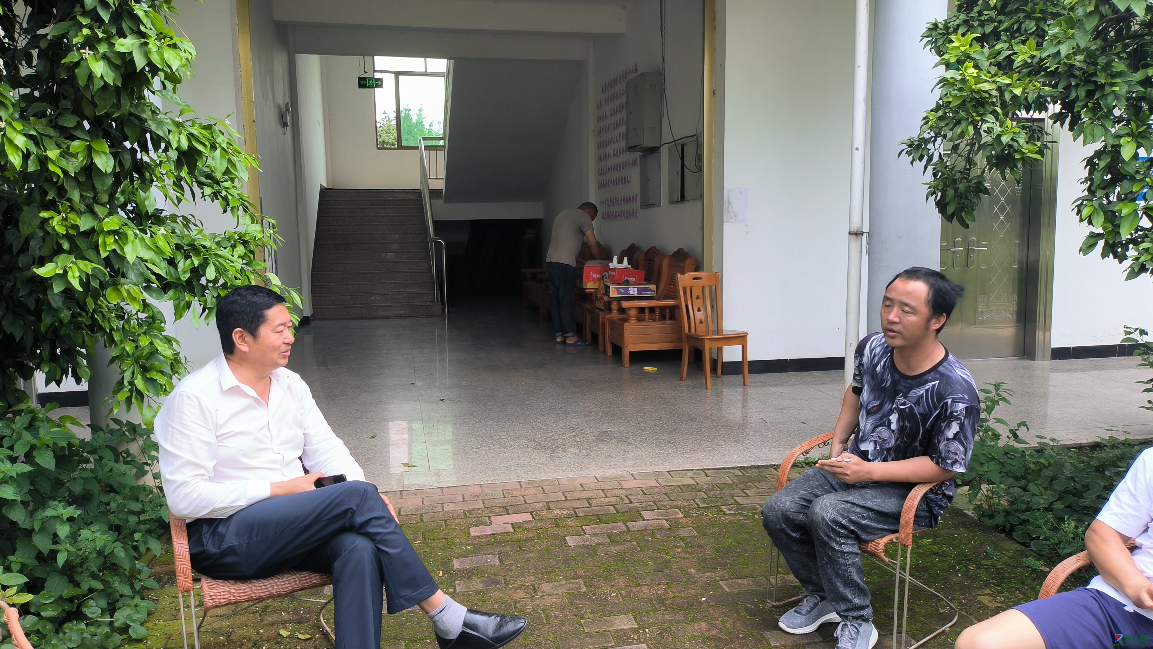图为沈总与困难军人面对面沟通交流