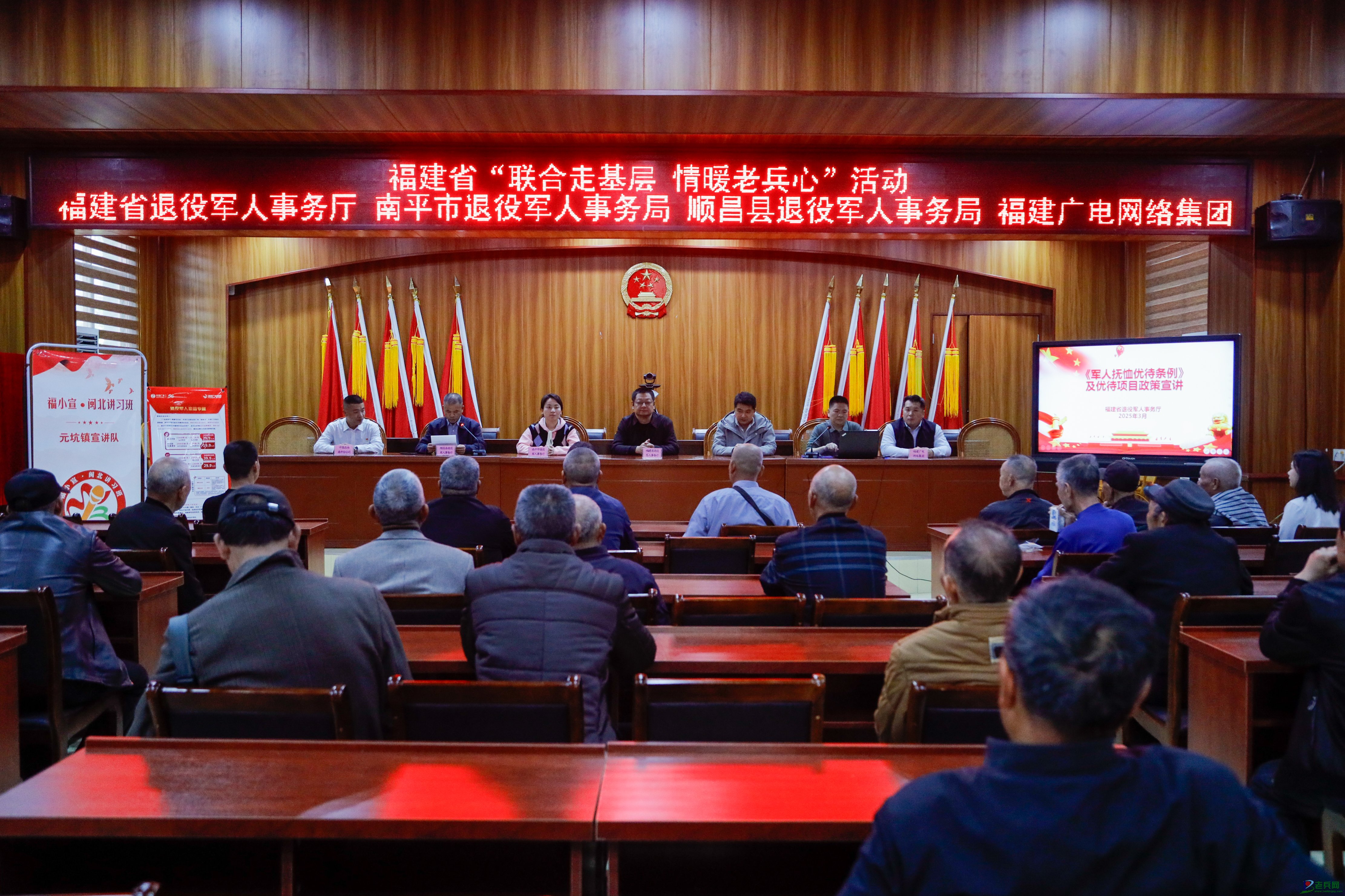 活动期间还开展政策宣讲活动,省退役军人事务厅优抚褒扬纪念处四级调研员颜新伟出席。现场同步开展《军人抚恤优待条例》政策宣讲及福建广电网络集团“崇军卡”优惠服务解读,帮助退役军人深入了解医疗、通信等优待政策。宣讲活动后,省退役军人事务厅领导带队前往元坑镇谟武村走访慰问3名退伍老兵,为他们送去温暖与关怀。