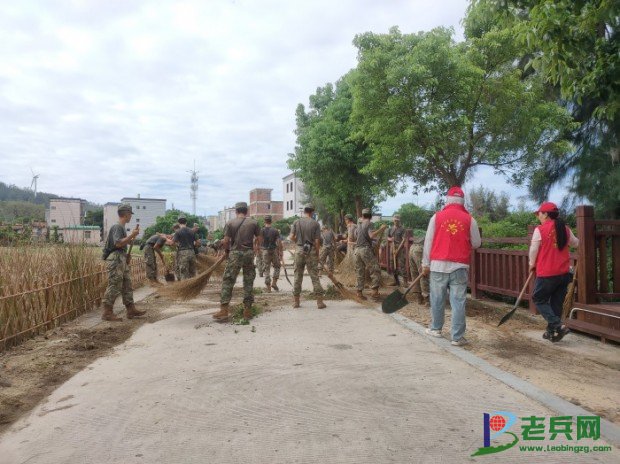 清晨的东山海岛,处处跃动着军民同心的动人图景。在金銮湾绵长的海岸线上,橄榄绿的身影与志愿红交织成最醒目的风景线。官兵与志愿者们俯身拾捡,细致清理塑料瓶、泡沫浮球、废弃渔网等海洋垃圾,让碧浪金沙重现纯净本色。在靠近海岸线的 后姚村,战士们与村民共同除去环村道的杂草和落土,让这个古村落变得更整洁,更怡人。活动也是互动,志愿者们饶有兴趣地向官兵们介绍该村近年来开发“古厝文创园”促进乡村振兴的做法,让清洁行动更加和谐、欢快,也让“第二故乡”在人民子弟兵心中留下更美的印象。