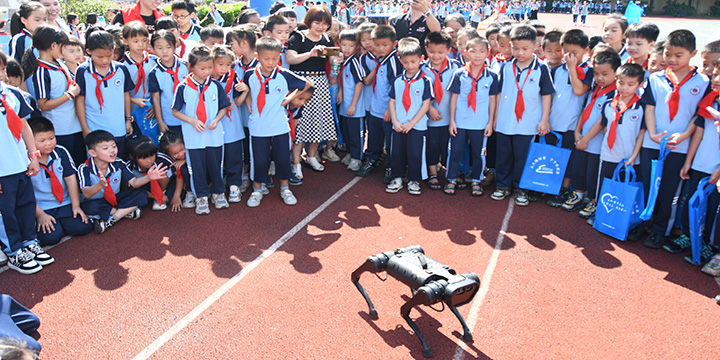 哇!没想到在学校也能一睹机器狗的风采。 在刚结束不久的杭州亚运会上,田径赛场上的显眼包机器狗以铁饼搬运工的身份,忙碌地奔跑着。这一幕,让网友直呼 科技感也太强了! 10月13日上午,这只火了的显眼包走进平和县语堂学校(平和坂仔中心小学),学生们第一次见到机器狗做着各种不同的动作,增强了科技节的趣味性,给学......