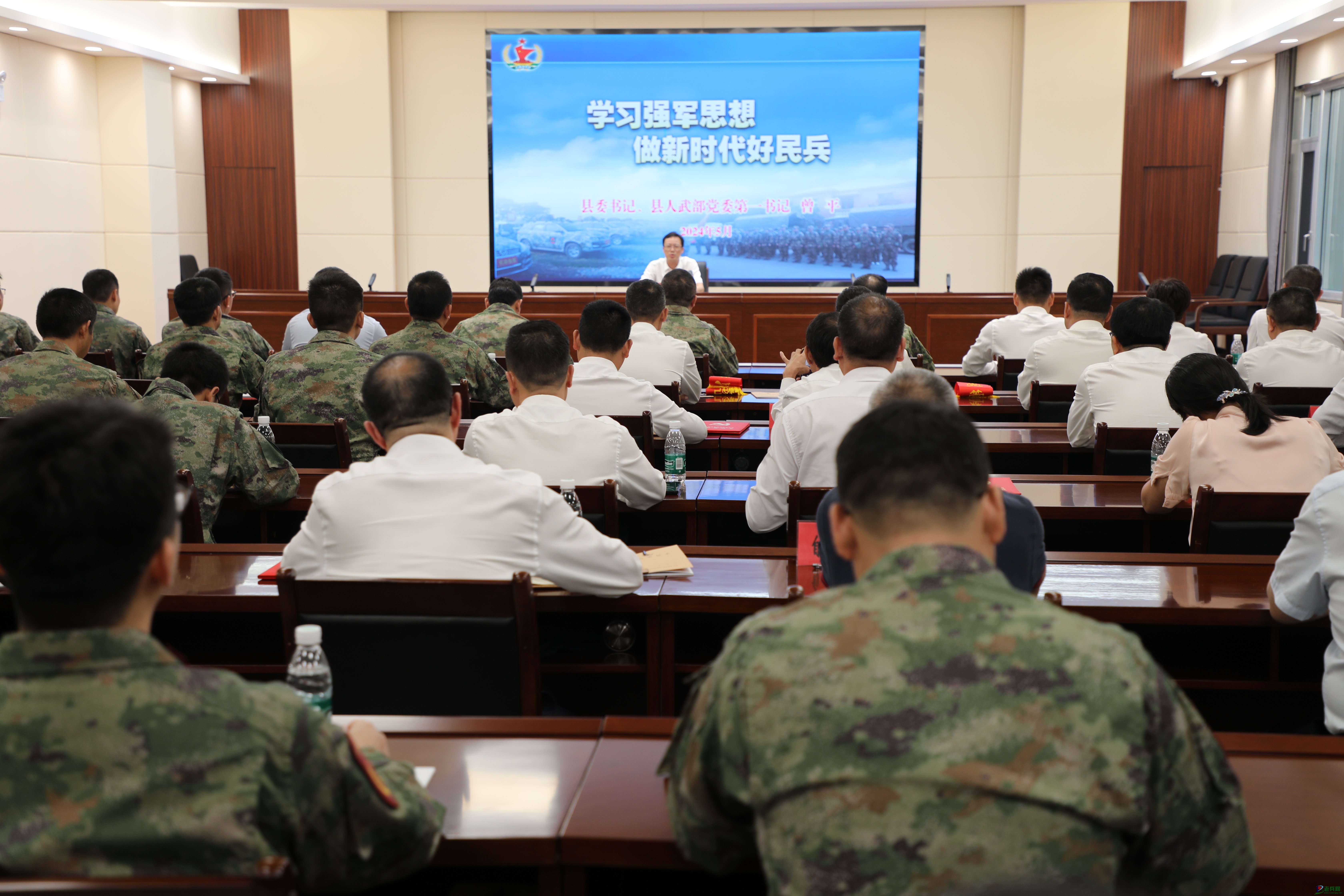 5月27日下午,县委书记、县人武部党委第一书记曾平以“学习强军思想,做新时代好民兵”为主题,为全县基干民兵、专武干部和基层武装部政治教导员上了一堂精彩生动的思政课。县委常委、县人武部政委王昂主持,县人武部部长谢正文、副部长刘鹏出席。