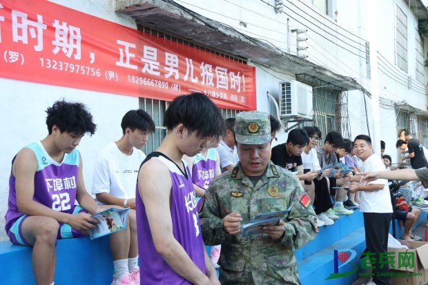 “热血青春 从军报国”……。 7月12日,在江西省赣州市南康区龙回镇,“村BA”现场,伴着中场休息的哨音响起,广场上播放征兵宣传视频,赢得现场观众一片叫好声。“利用当下脍炙人口的“村BA”宣传征兵工作,旨在以喜闻乐见的方式增强群众的国防观念、激发适龄青年应征积极性。”南康区征兵办领导说。