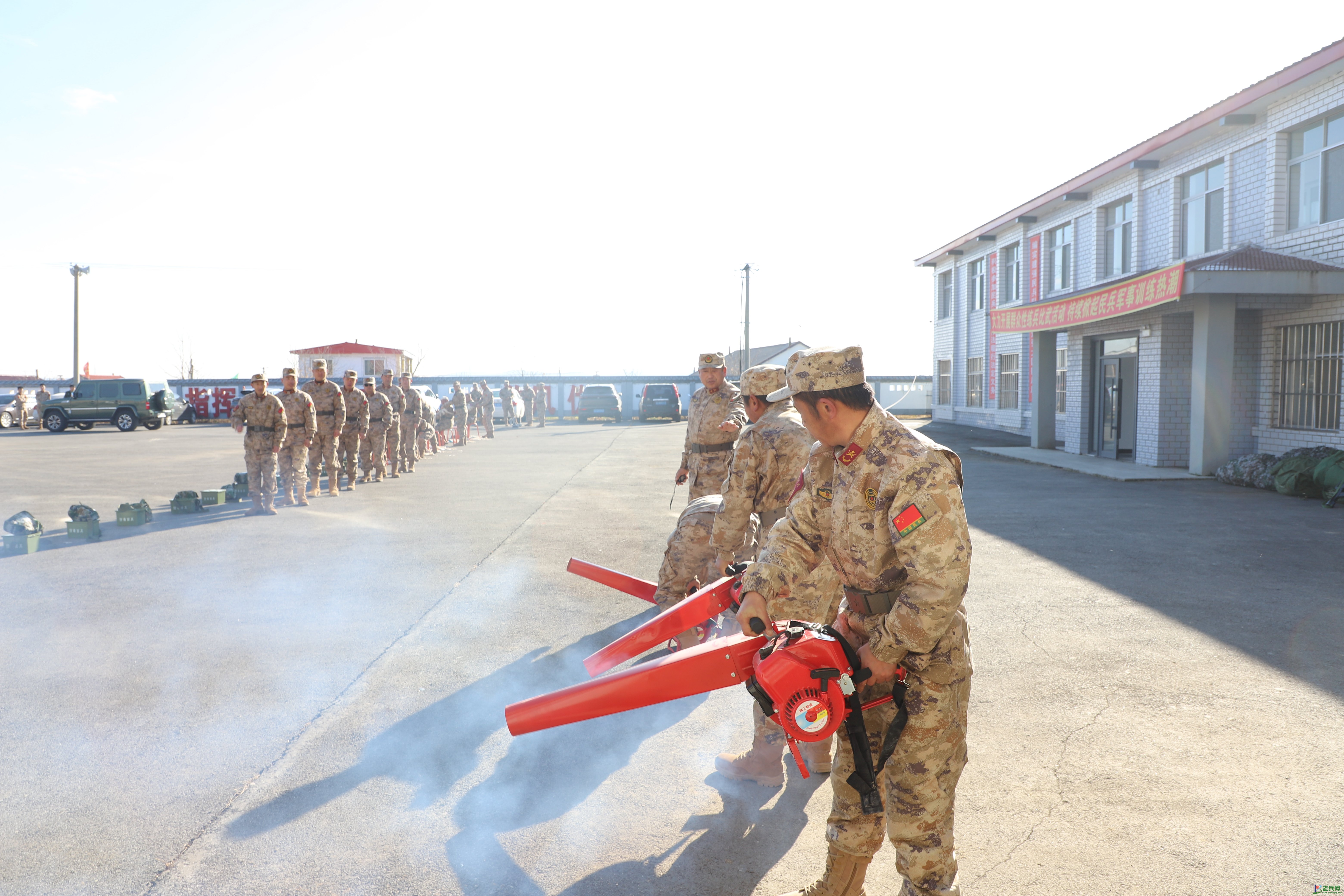 训练期间,民兵们不仅接受了队列训练、体能训练、还加入了风力灭火器使用、战场包扎技术、野外搭设帐篷以及模拟捕获枪训练等科目。